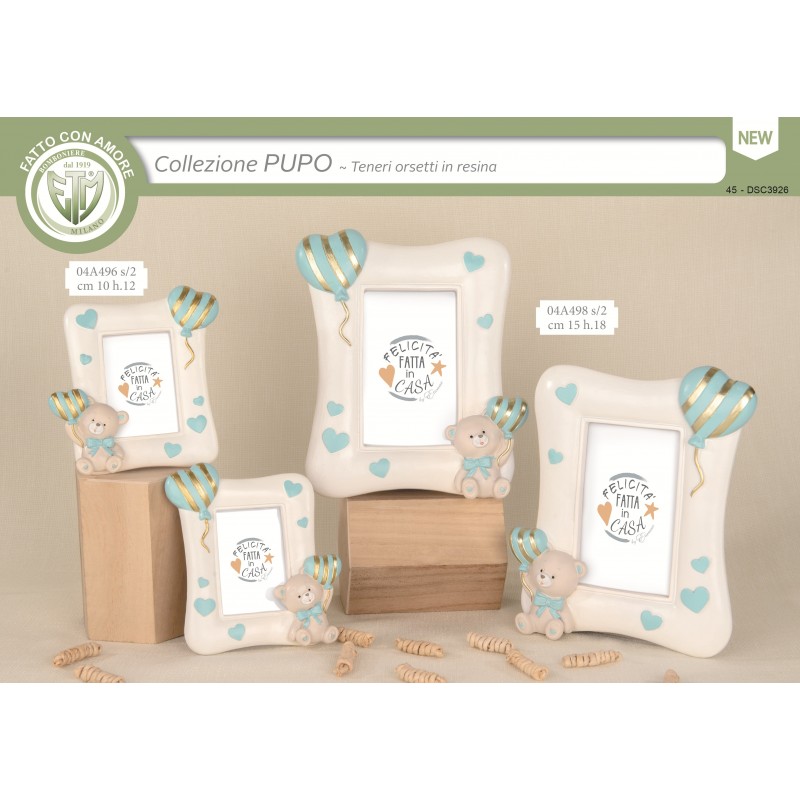 Portafoto orsetto celeste in resina ETM