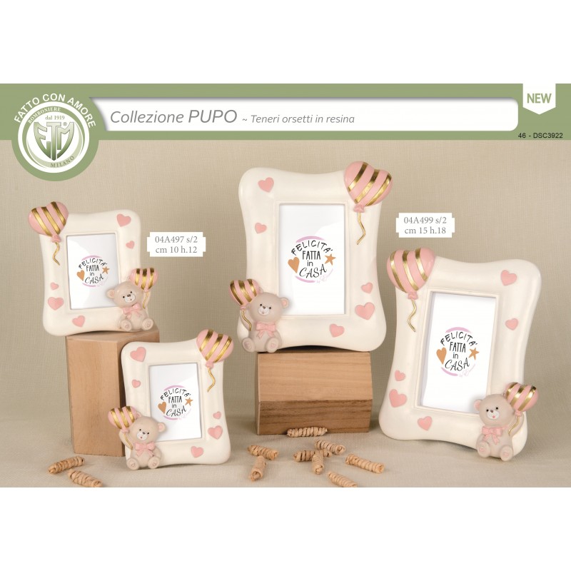Portafoto orsetto rosa in resina ETM